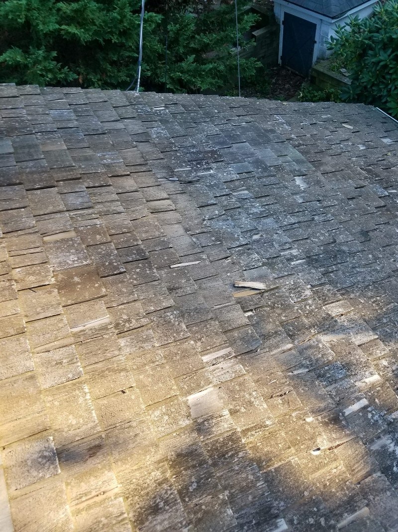 This was an old cedar shake roof. We completed some repair work back in 2017. This previous customer contacted us when a large tree fell on their home. The tree damage and significant storm events it was time to replace the roof.